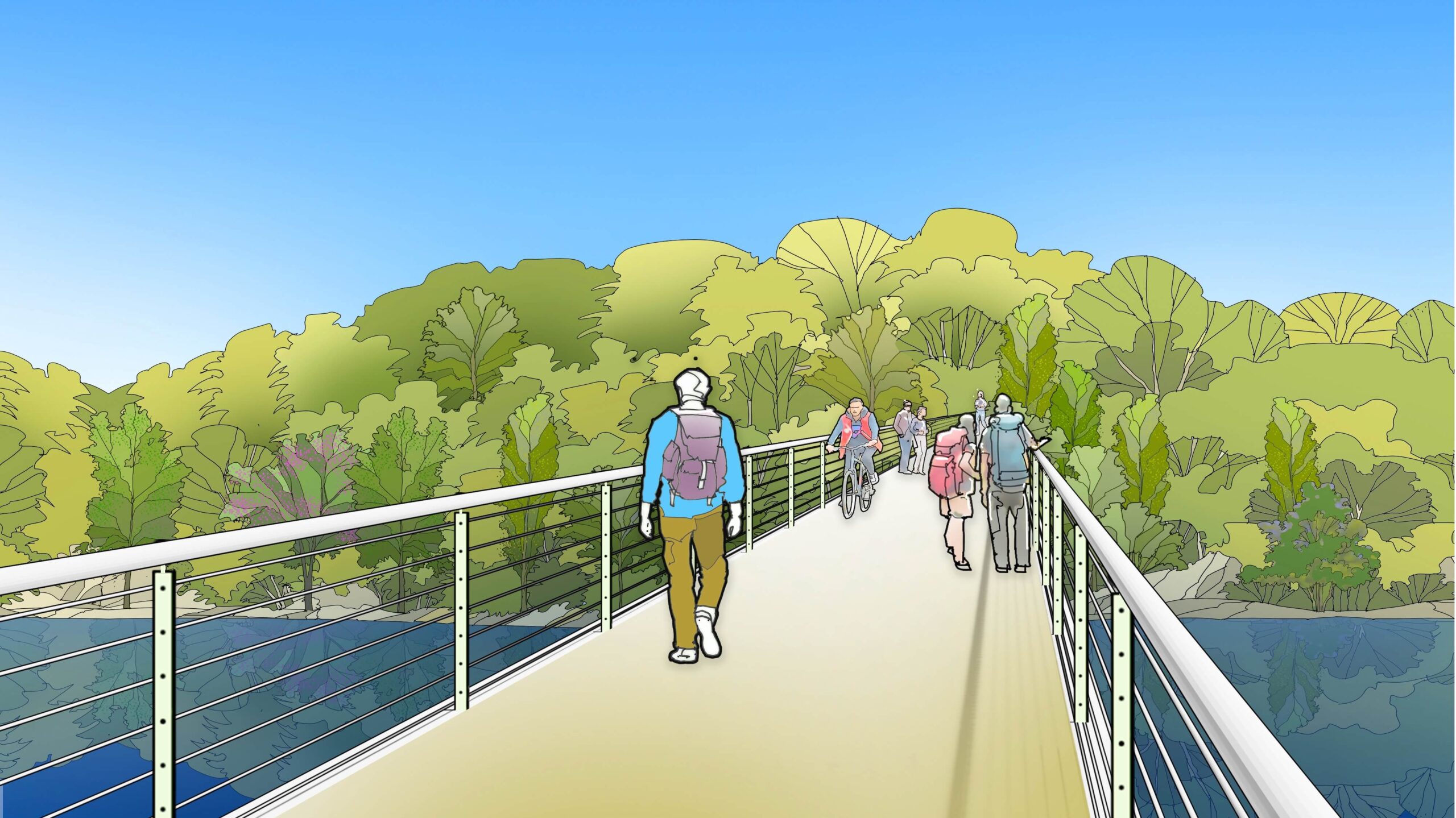 Fully ADA accessible, the bridge ensures seamless passage for pedestrians and cyclists near several existing trails, while providing ample vertical clearance for small recreational watercraft. By balancing cost-effectiveness with a visually outstanding profile, the project complements the natural landscape and elevates the surrounding context.